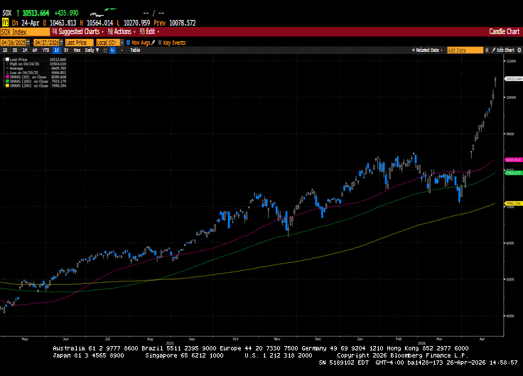 Global markets had mixed results last week as headlines about the US-Iran conflict continued to affect trade. Conflicting reports of the US and Iran meeting to negotiate a ceasefire came and went without the two sides meeting. The Strait of Hormuz continued to be closed while the US continued to impose a blockade on Iranian ships. A fractured Iranian leadership has likely reduced hopes for negotiations, and while a ceasefire remains in place by the US, this timeline is very much in question. As the War enters its ninth week, concerns about global growth are mounting, and the damage to supply chains is worsening. Despite concerns about the conflict, Q1 earnings have come in much better than expected. Solid results from several technology companies, along with more news related to AI collaboration, helped propel the S&P 500 and NASDAQ to all-time highs. A fantastic quarter and outlook from Intel pushed the Philadelphia Semiconductor Index materially higher for the week. According to FactSet, 28% of the S&P 500 have reported first-quarter results. Of these results, 84% have beaten earnings per share estimates, while 81% have beaten revenue estimates. Currently, earnings per share growth for the quarter is 15.1%, while revenue growth is 10.3%. Other corporate highlights included the announcement that Apple’s Tim Cook would step down as CEO and that John Ternus would take over as CEO starting September 1st. Amazon and Anthropic announced a deal that includes a $25 billion investment by Amazon in Anthropic and a 10-year, $100 billion AWS deal between the companies. Elsewhere, it appears that Kevin Warsh will be confirmed as the next Federal Reserve Chairman. Mr. Warsh, during his confirmation hearing, stood by the independence of the Federal Reserve, was critical of the size of the Fed’s balance sheet, and will seek a new framework to contend with inflation. The DOJ, late in the week, dropped the criminal probe into current Fed Chairman Powell and his oversight of the renovation of the Federal Reserve’s building, which has cost $2.5 billion.